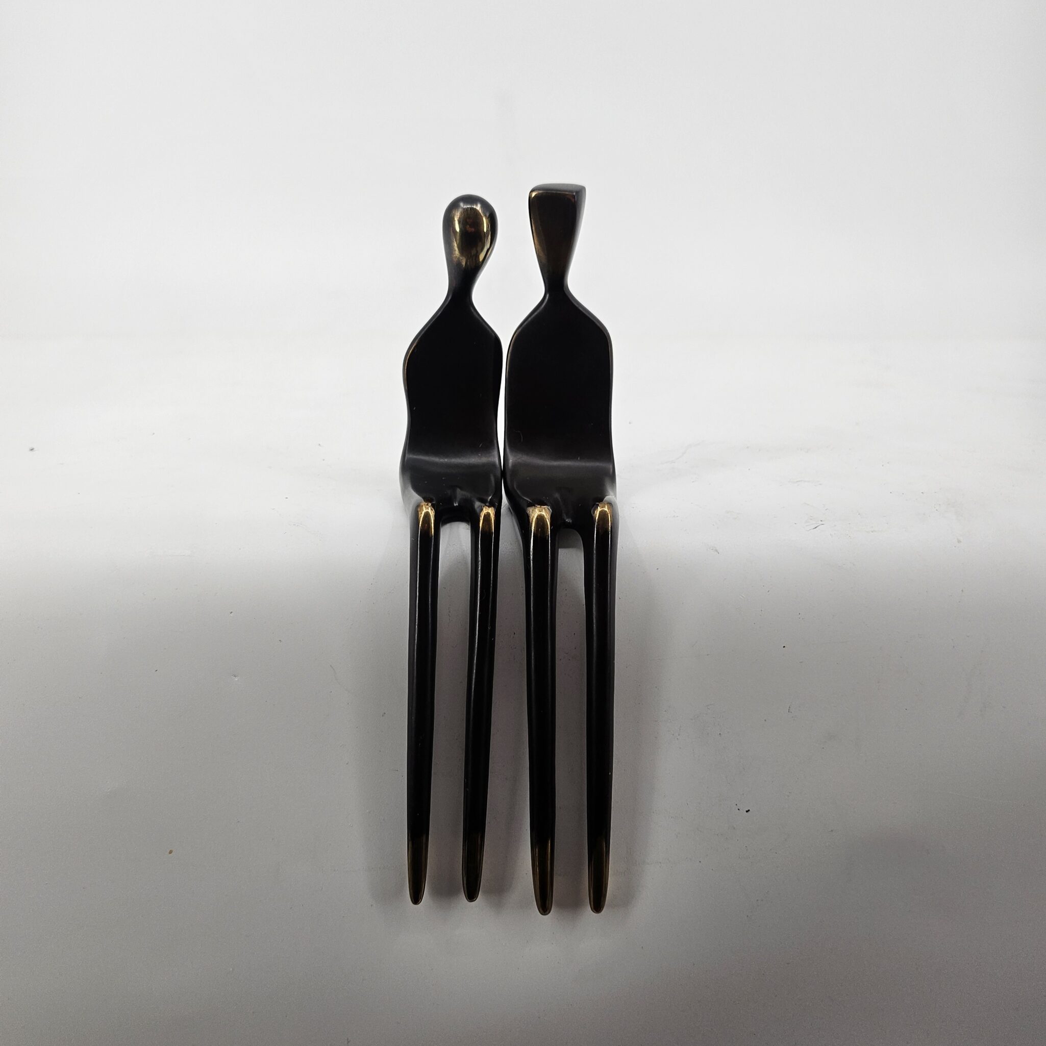 "I am a total romantic. I chose to create figurative bronze sculptures to convey romantic longings, love, and emotions through my sculptures. My collectors are loving, happy people who share my work with their loved ones. My little people become a centerpiece in the collector’s home. I can’t imagine a more fulfilling art career than being part of your life.” Yenny’s figurative sculptures represent one of nature’s most complex and beautiful forms – the human body. Her work refines the human figure to basic, almost geometric forms while portraying an emotional idea or story. She gives her subjects life by capturing their innermost emotions while expressing her romantic longings. The artist starts each piece in clay, wax, or metal. The figures are then cast in bronze using the lost wax casting technique in which a mold is created from the original artwork, then casting waxes are created for the foundry to cast. The artist applies the patina, the final coloration, using various traditional patina acids and formulas. Yenny is a master printmaker, but she has always created jewelry and small sculptures inspired by Danish design. She has worked with her uncle, master goldsmith B...