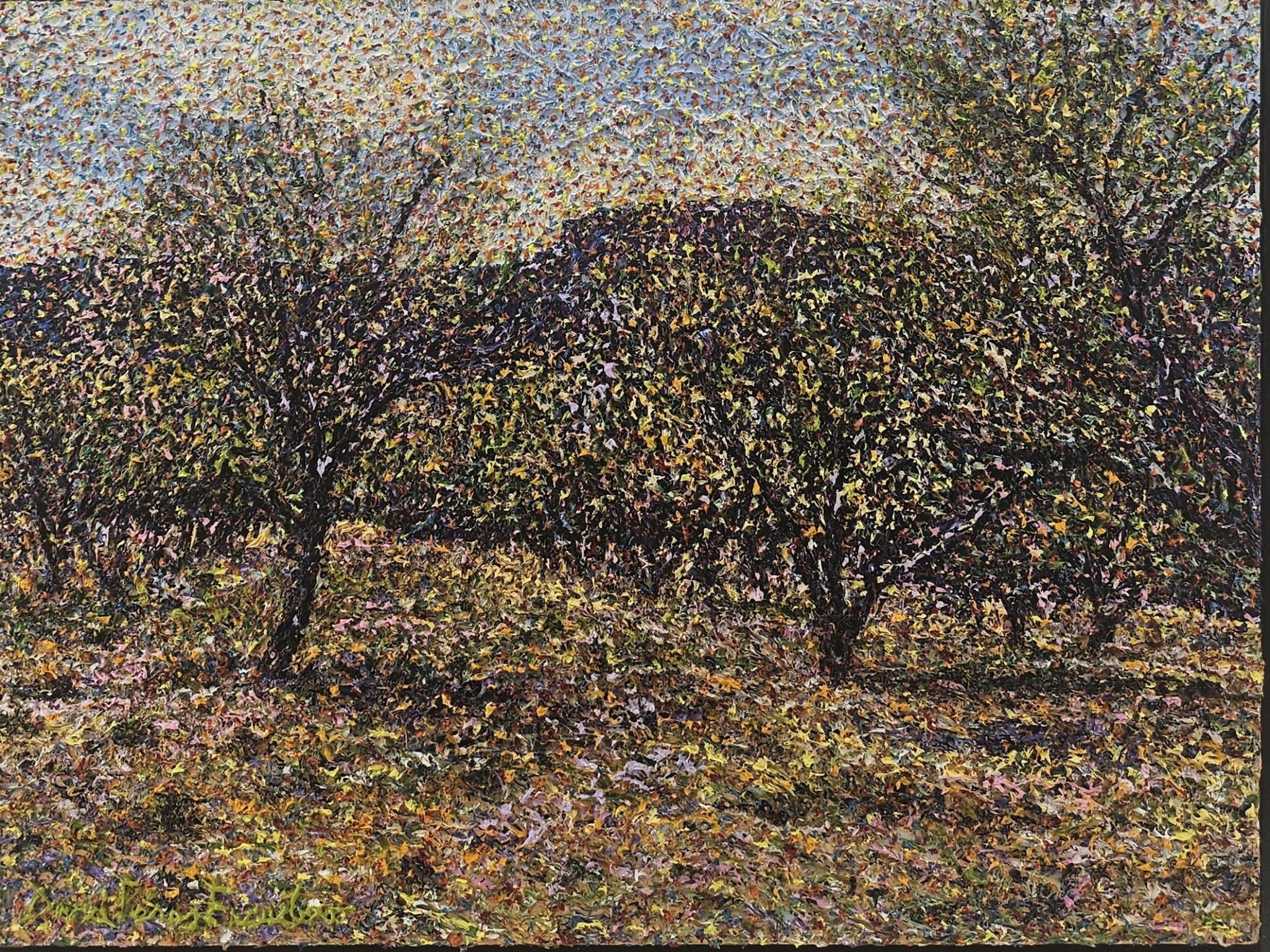 David Perez Escudero is a New Mexico-based artist inspired by the region's dramatic landscape, which he has explored since his youth. He uses a unique micro-palette technique to capture the vitality of nature, creating layers of paint with small fractures that change in intensity depending on the time of day and light source. He studied art, math, and science at New Mexico Highlands University and the University of Madrid, and draws influence from artists like Velasquez, Goya, Manet, Monet, Bonnard, and Cezanne. He has exhibited his work in numerous shows and markets, receiving awards such as Best of Show and Best of Fine Art at the Hispanic Contemporary Market in Santa Fe. His paintings have been collected by private collectors and corporations, as well as public collections such as the Museum of Art in Albuquerque and the New Mexico State Capital in Santa Fe. David currently resides in Santa Fe and has studios in both Santa Fe and Las Vegas, New Mexico.