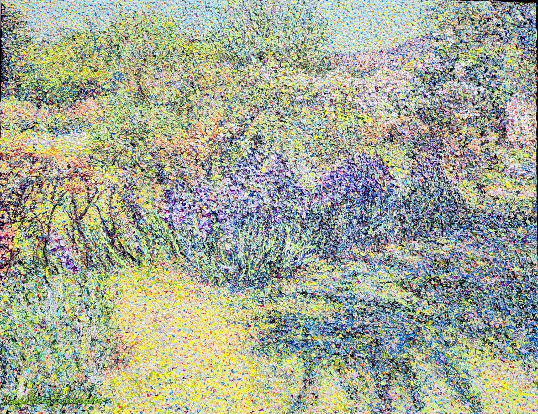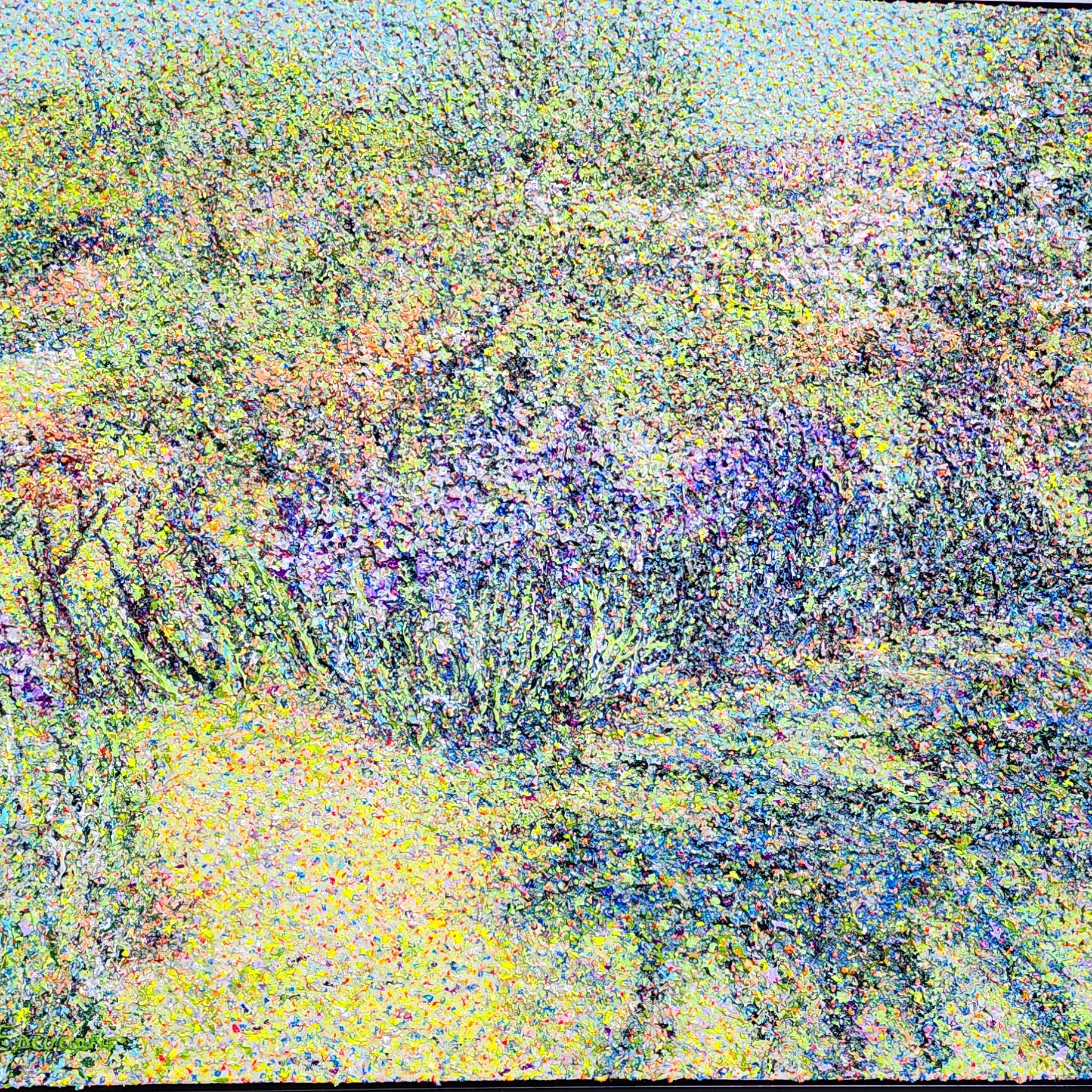 David Perez Escudero is a New Mexico-based artist inspired by the region's dramatic landscape, which he has explored since his youth. He uses a unique micro-palette technique to capture the vitality of nature, creating layers of paint with small fractures that change in intensity depending on the time of day and light source. He studied art, math, and science at New Mexico Highlands University and the University of Madrid, and draws influence from artists like Velasquez, Goya, Manet, Monet, Bonnard, and Cezanne. He has exhibited his work in numerous shows and markets, receiving awards such as Best of Show and Best of Fine Art at the Hispanic Contemporary Market in Santa Fe. His paintings have been collected by private collectors and corporations, as well as public collections such as the Museum of Art in Albuquerque and the New Mexico State Capital in Santa Fe. David currently resides in Santa Fe and has studios in both Santa Fe and Las Vegas, New Mexico.